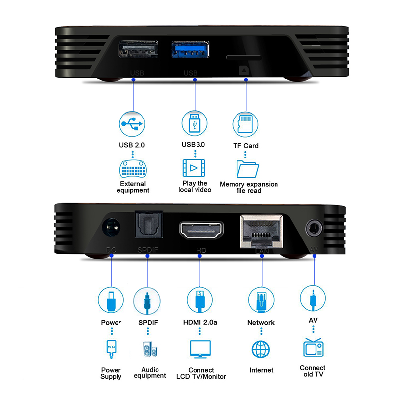 将播放盒通过HDMI线连接至液晶电视或显示器;